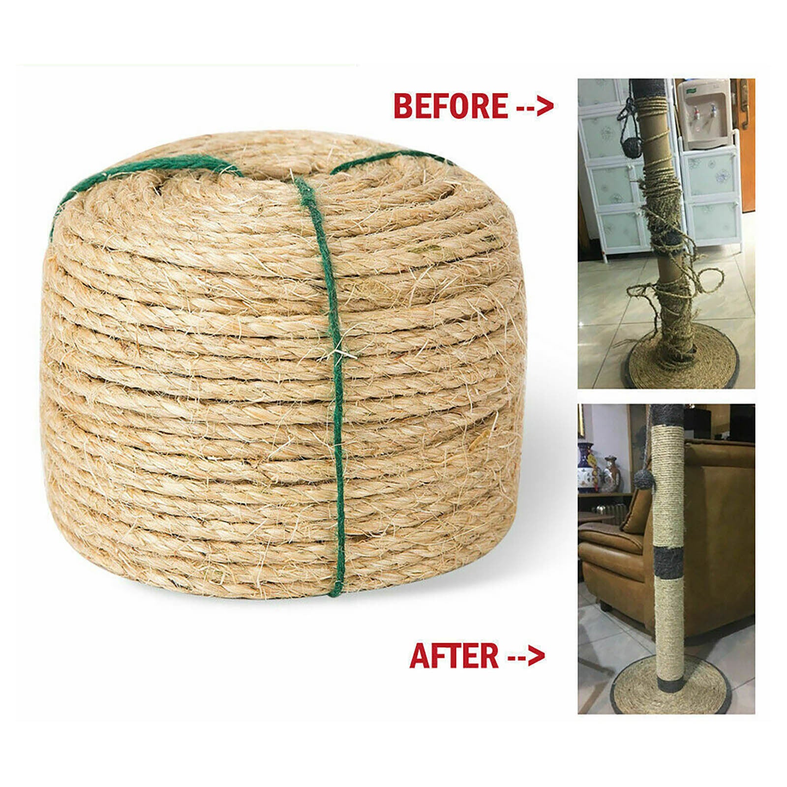 Do it yourself: Sisal rope is used for processing cat climbing frames and producing cat toys. Suitable for repairing or making a cat scratching post.It is very strong and scratch resistant.