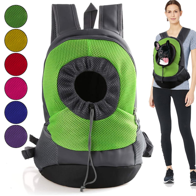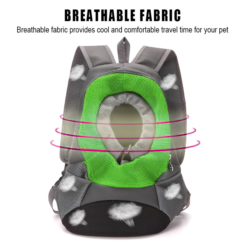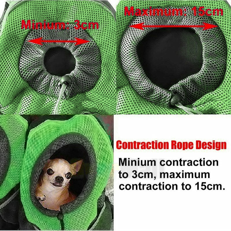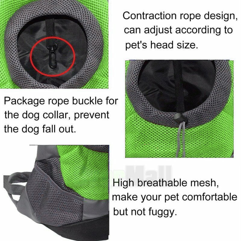 It is made from premium sandwich mesh and oxford cloth. The soft shoulder adjustable shoulder strap helps to reduce the load. The wearer's internal buckle design can be attached to a pet collar to prevent pets from coming out and safely protecting the pet. The buckled retractable shoulder strap keeps the backpack stable. The front hole adjusts the drawstring according to the size of the pet. The well-ventilated design allows for optimal airflow and controls pets, soft, and lovely linings allow your pet to relax and rest. Mesh windows are ventilated and transparent, allowing your pet to breathe and relax freely. The zip-top is easily accessible. The net side pockets help save tethers, whistles, water, snacks, snacks, and other needs.